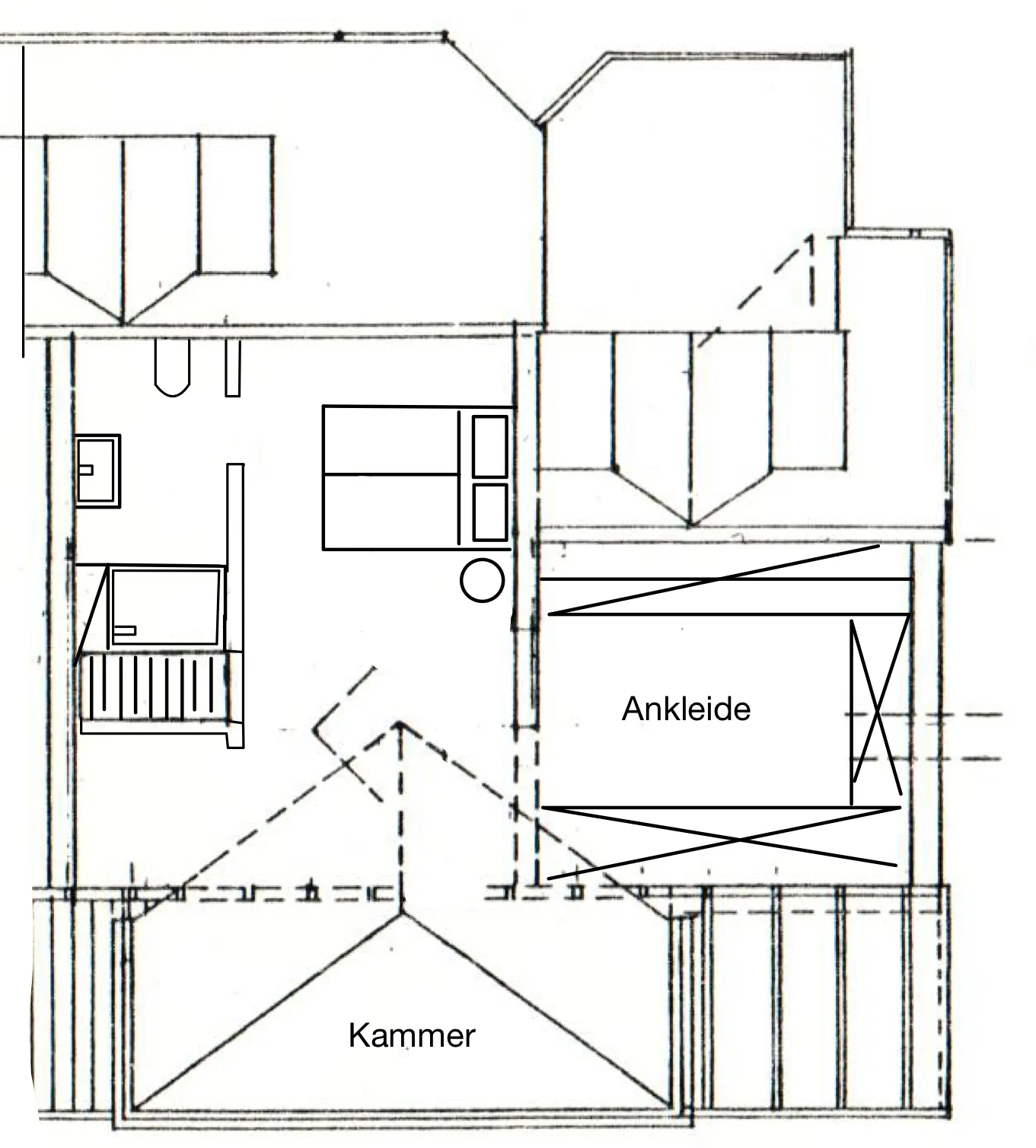 ✓ Spitzboden, welcher als Schlafbereich genutzt wird mit geräumiger Ankleide