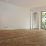 Großzügiger Wohnbereich: ca. 54 m², raumhohe Fenster, Blick in den parkähnlichen Garten, Zugang zum sonnigen Südbalkon