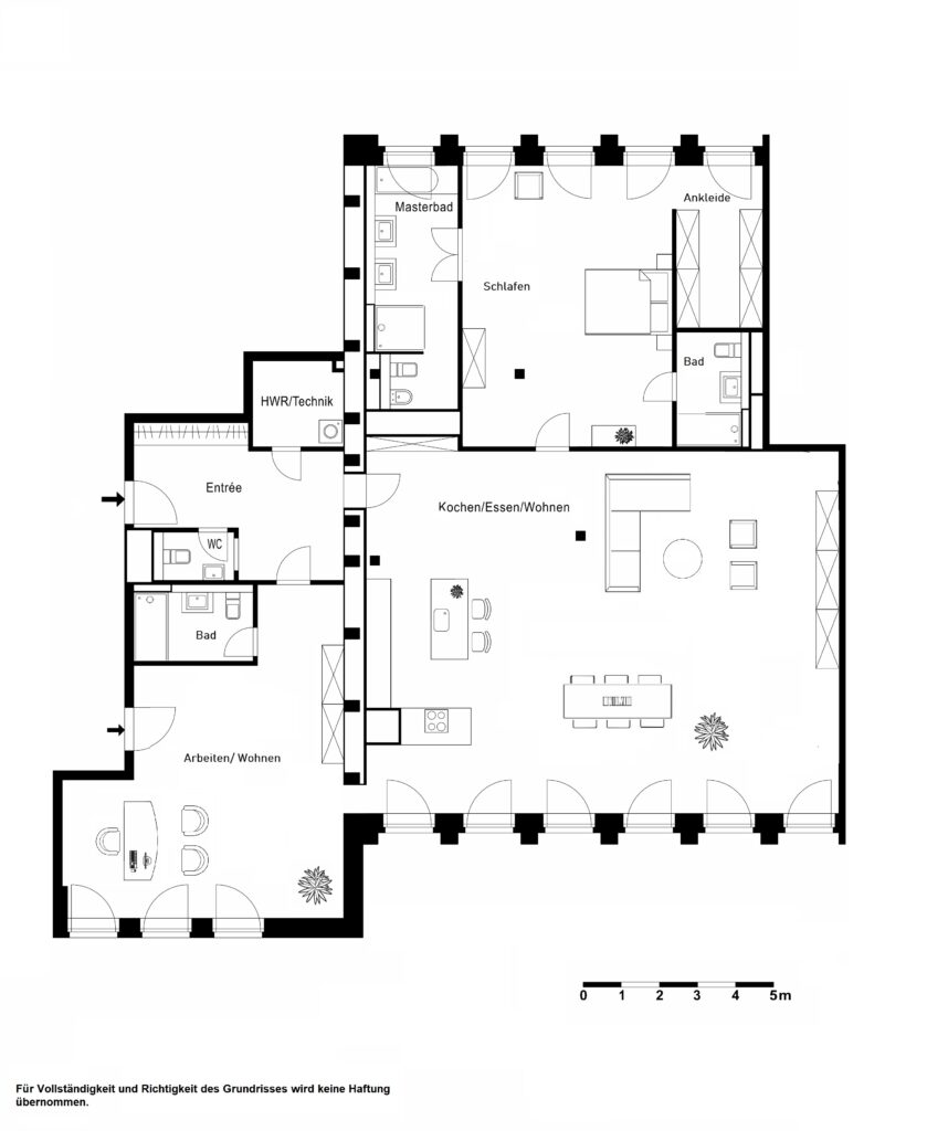 Durch das Entrée gelangen Sie in den beeindruckenden, großen, hellen Wohnbereich mit seinen 108 Quadratmetern.