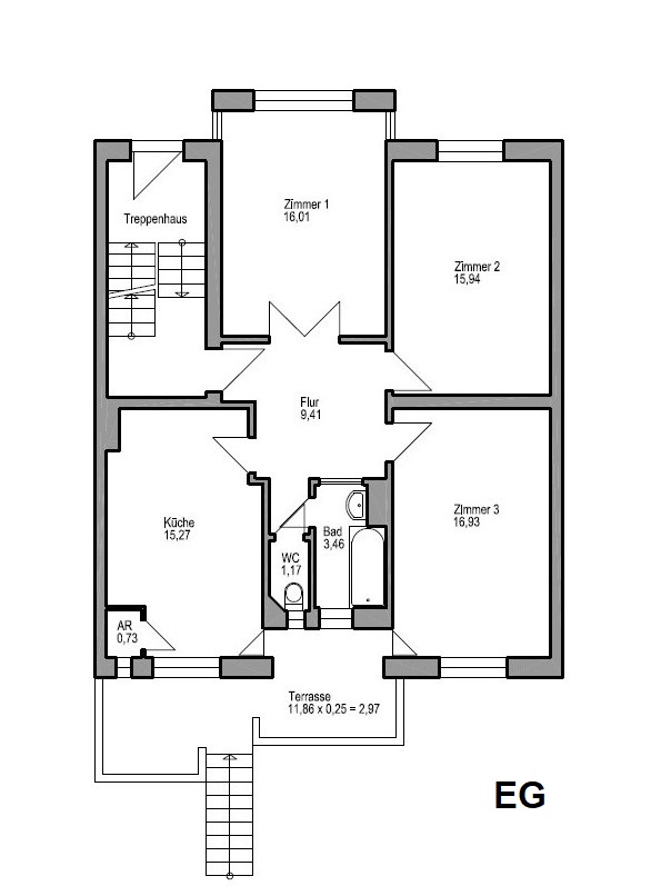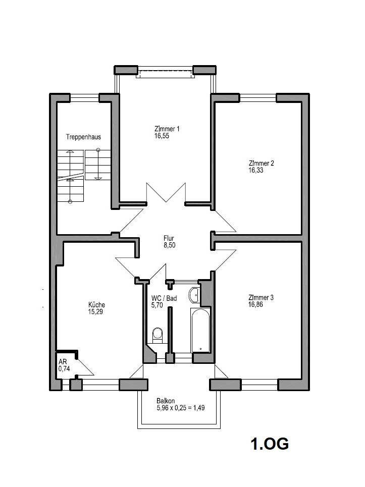 – 3 Wohnräume, Tageslichtbad, Gäste-WC, geräumige Diele