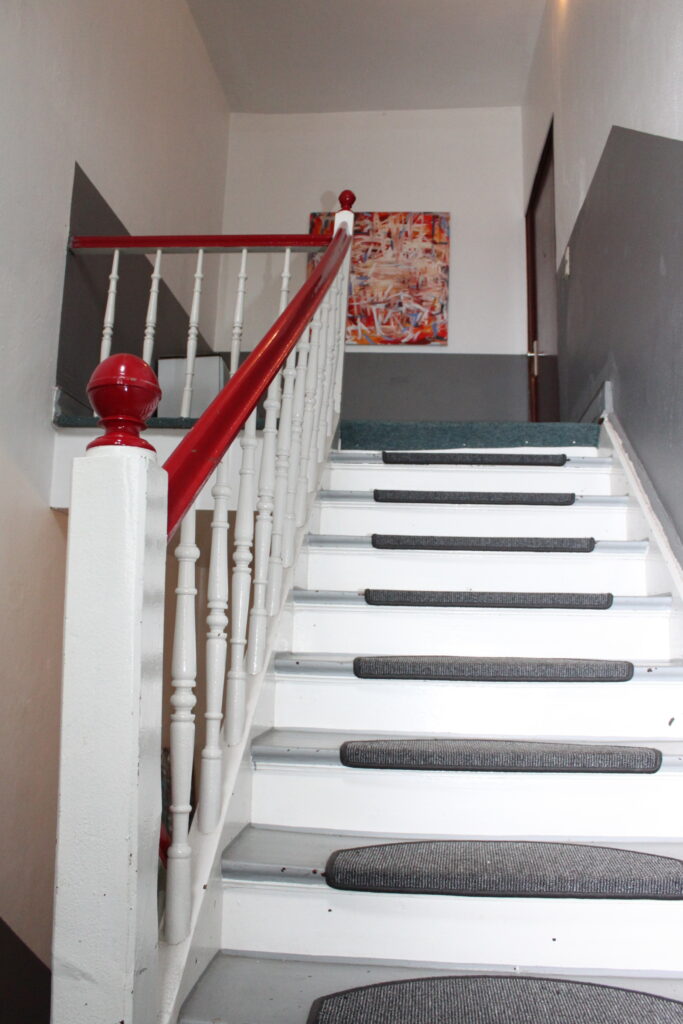 Während im Erdgeschoss ein Ladenlokal (61qm) liegt, befinden sich im 1-3. Obergeschoss und im Dachgeschoss
